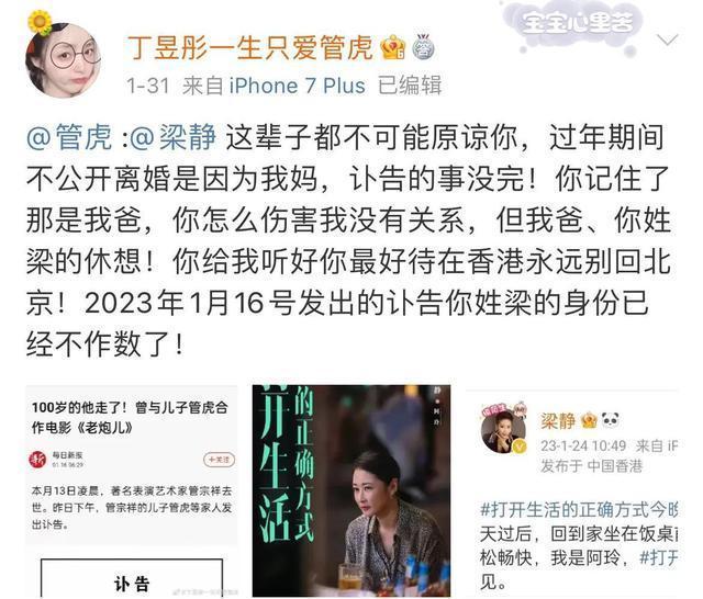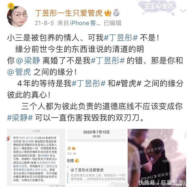 管虎闹出最严重的是在2021年,当时有个姑娘不仅将个人账号名称改为“丁昱彤一生只爱管虎”外,她还在账号上diss原配梁静。