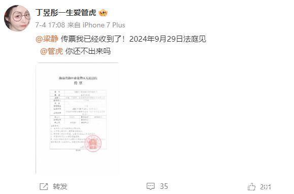 据悉在今年这个女孩已经接受到了梁静告她的传票,然而她依旧不消停。