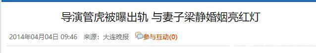 参考信息:导演管虎被曝出轨 与妻子梁静婚姻亮红灯.2014年04月04日 09:46 来源:大连晚报;