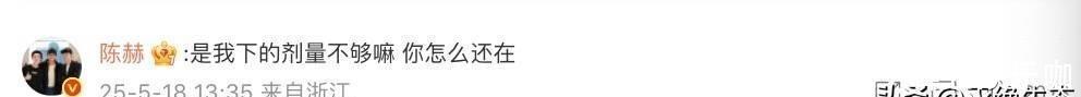 陈赫搞笑地回应说自己下的剂量不够,结果他还在这儿呢!真的是笑点满满啊!