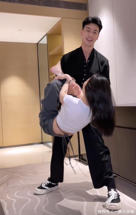 陈紫函看到网络上流行的挑战,也要拉着戴向宇拍,戴向宇一边展现男友力爆棚,还一边要关注陈紫函抓紧了没,可别摔了。
