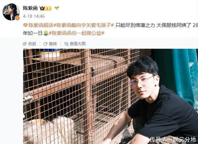 拍戏的闲暇时间,陈紫函会提着猫粮投喂影视基地的流浪动物,身边也会出现戴向宇的身影。