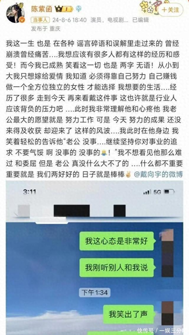 婚后“陈紫函老公”的称呼伴随戴向宇多年,但他并不介意女强男弱的讨论。