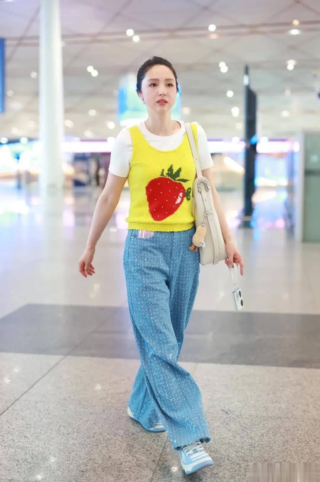 董璇夏季新穿搭火了!短袖背心阔腿裤,真能减龄高级?