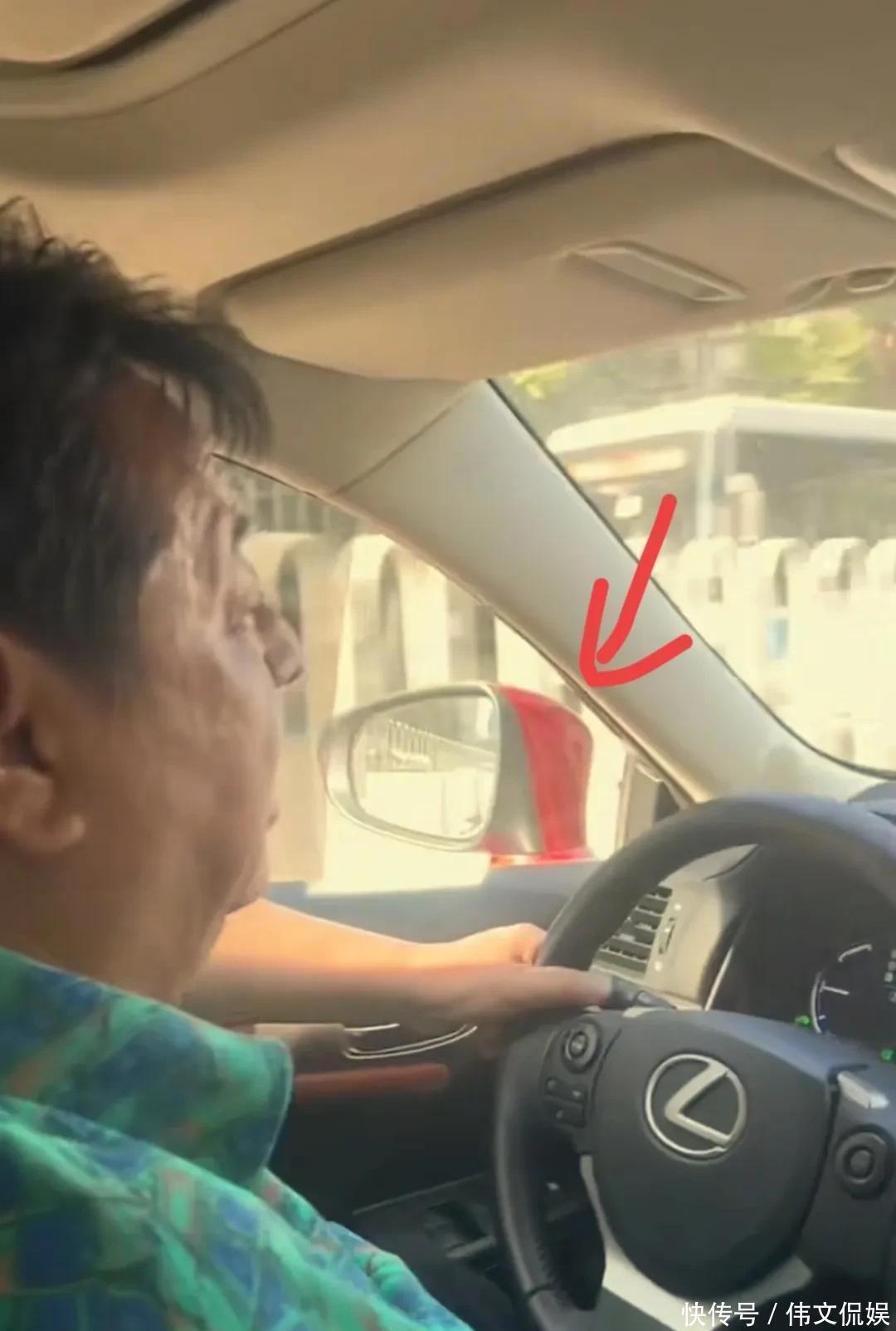 从车标上可以看出,李金斗开的是一辆雷克萨斯的SUV,价格都过百万了。这辆车的后视镜壳是红色的,一眼就能看出车身是大红色。李金斗老爷子开着这辆红色的豪车上街,真是太高调了。