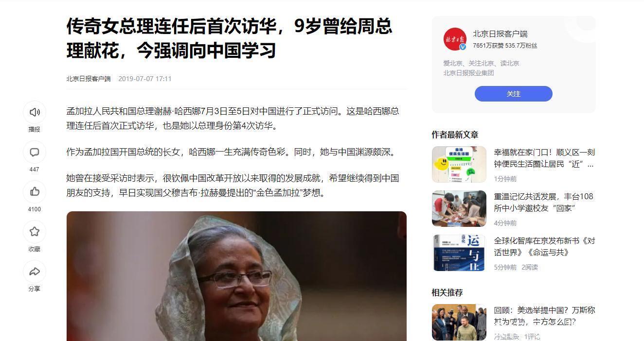 3、传奇女总理连任后首次访华,9岁曾给周总理献花,今强调向中国学习《北京日报客户端》2019-07-07