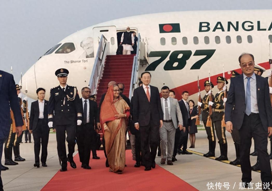 “铁娘子”哈西娜抵达北京,穿色彩鲜艳的纱丽裙,好似邻家老奶奶