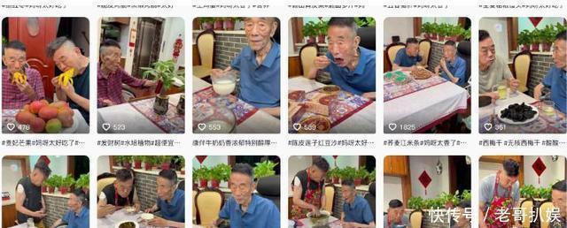 中午一点多,他那个账号还更新了视频,还是拍吃淀粉肠的样子,老人咬了一口,眉头皱着,明显咽得费劲,旁边的人还在催着说词。