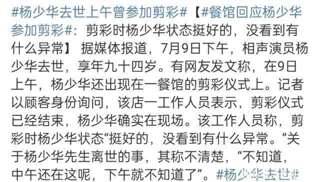 下午没到四点,消息就传出来了,杨少华没了,这事儿一出来,网上炸开了锅。