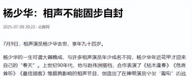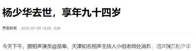 2.环球网,2025-07-09,杨少华去世,曾主演《杨光的快乐生活》