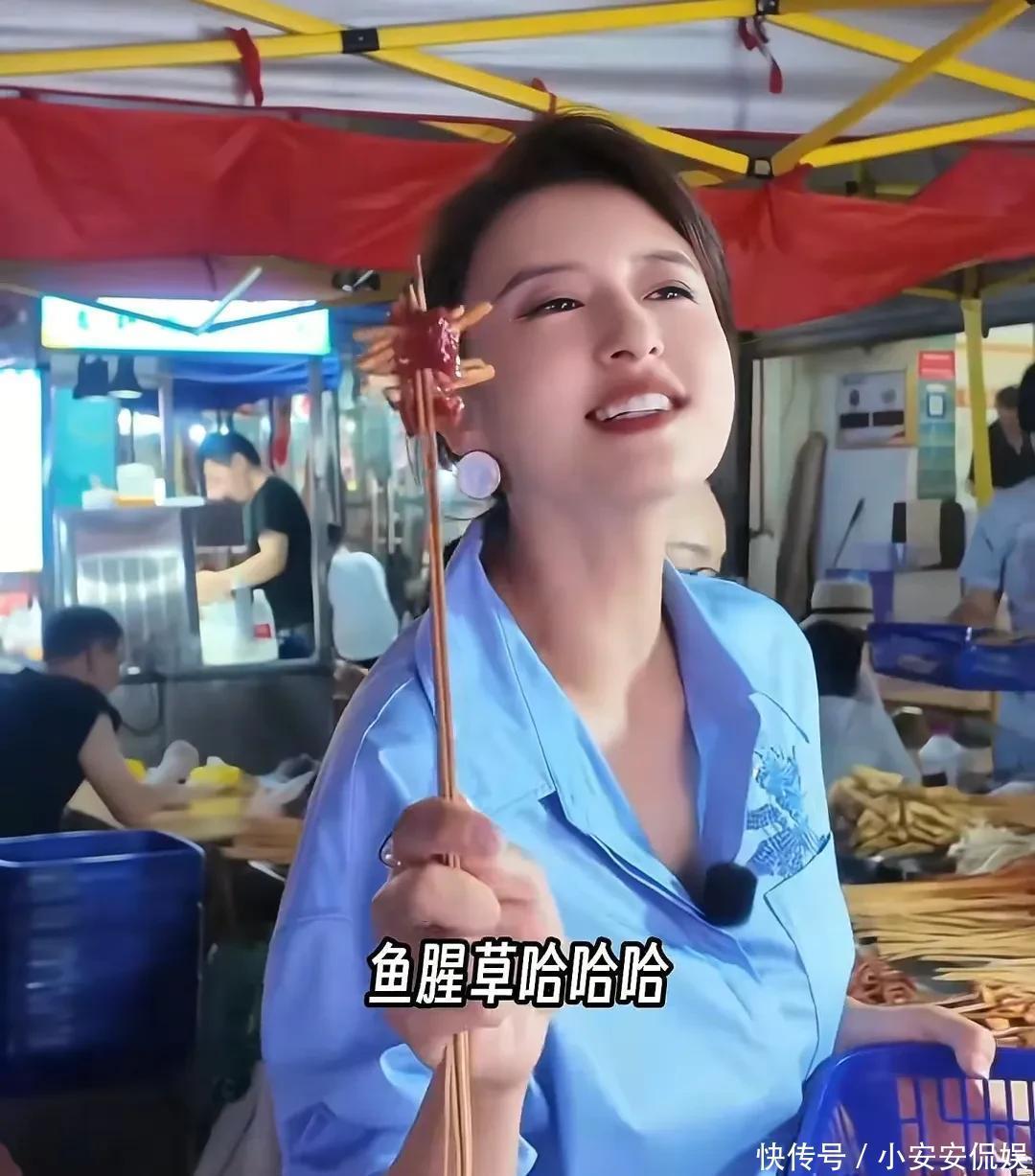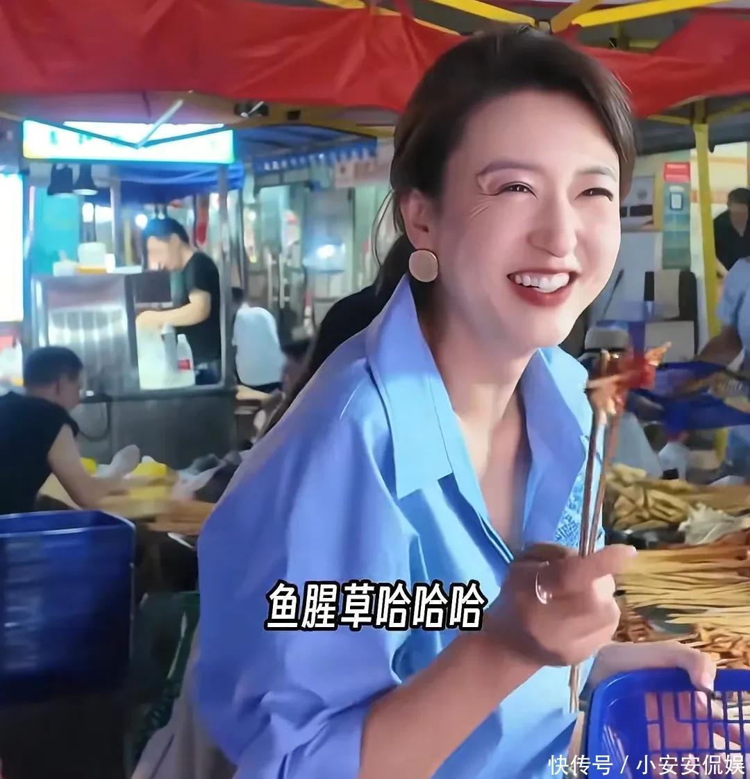 摊主给了张蕾蓝色塑料筐,让她挑选爱吃的食材,张蕾看到鱼腥草直接激动了,拿着串串对镜头展示。很多人吃不惯那个土腥气的味道,但张蕾非常喜欢,看她脸上的表情就知道有多高兴。张蕾本人比平时电视里看到的更圆润一些,属于微胖的身形,46岁了脸上还有满满的胶原蛋白,状态不错。