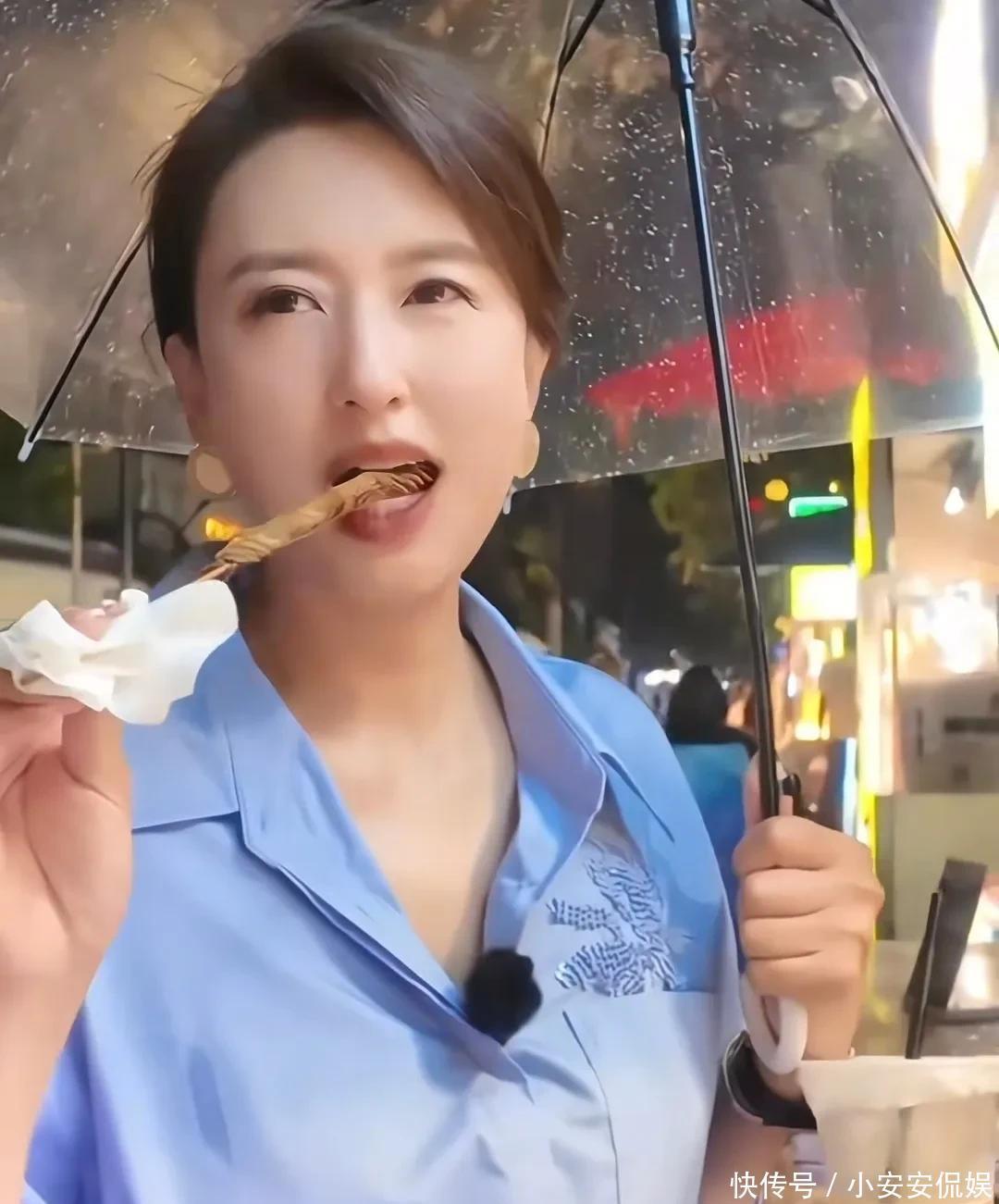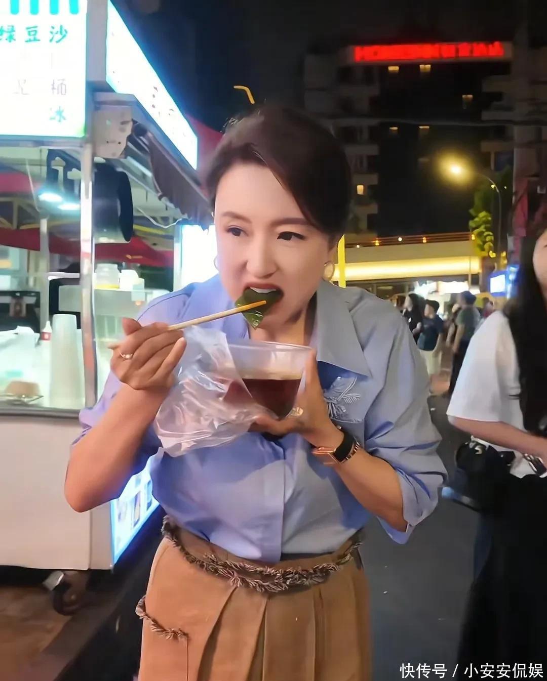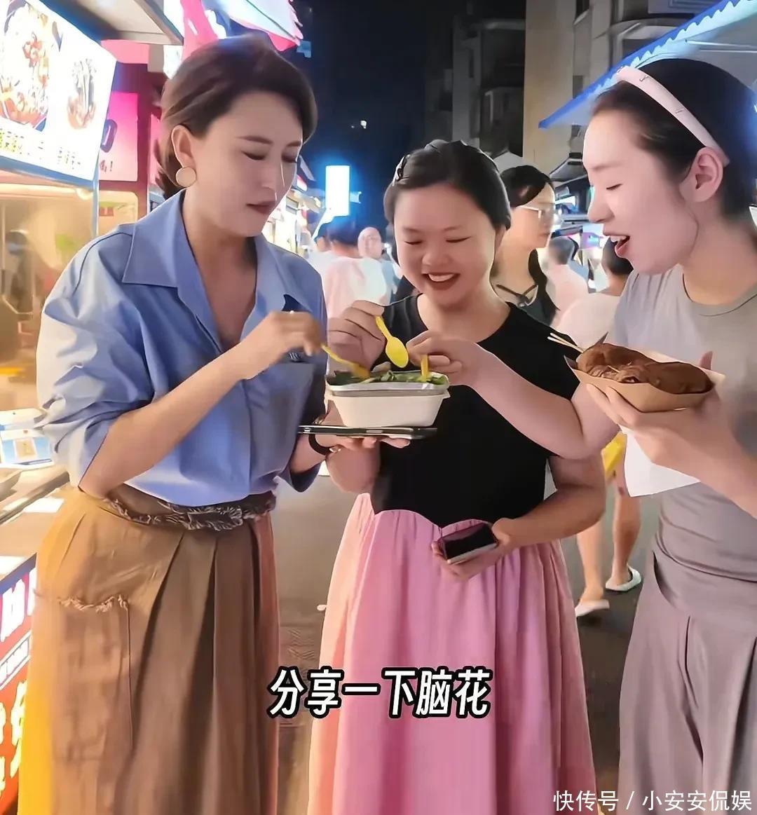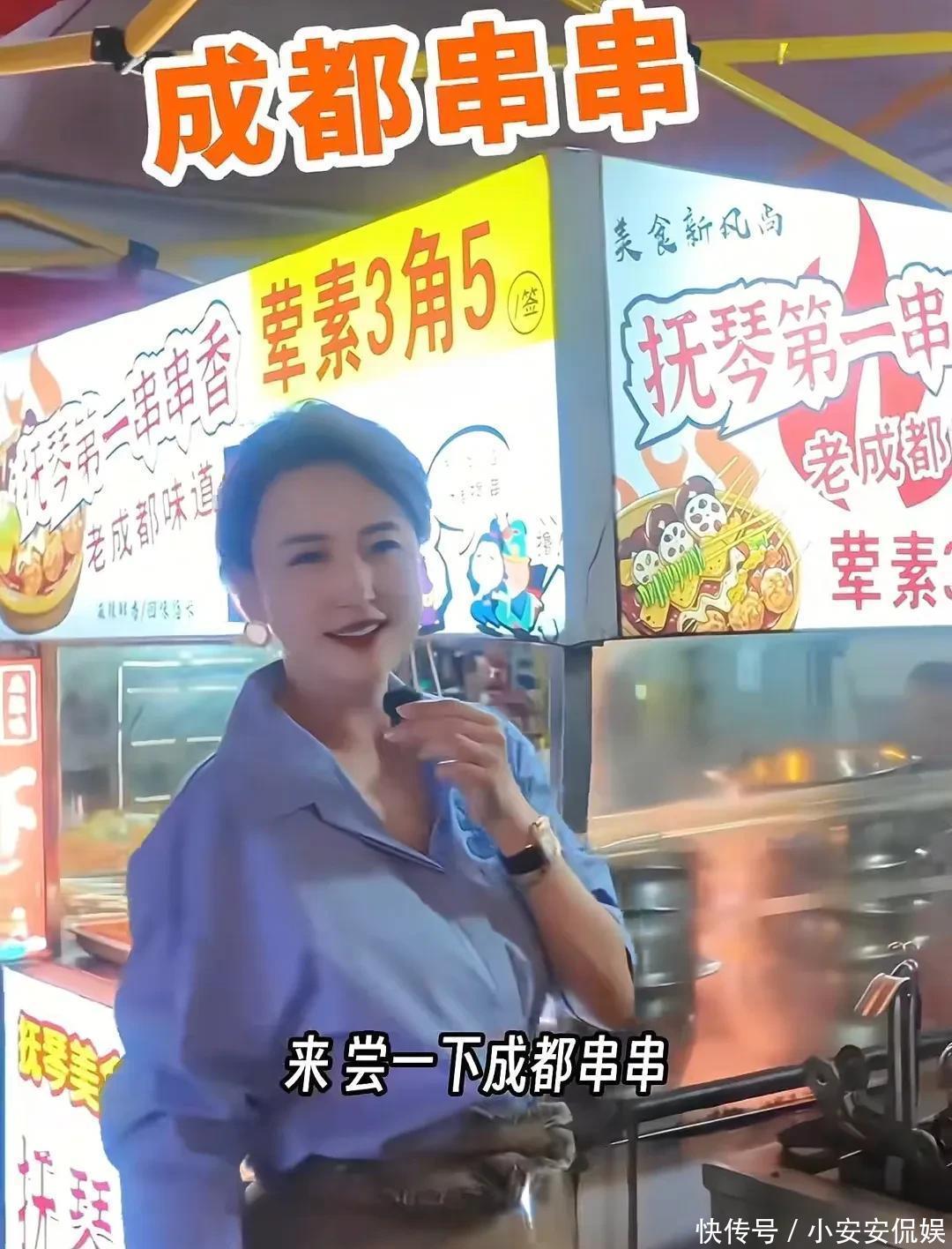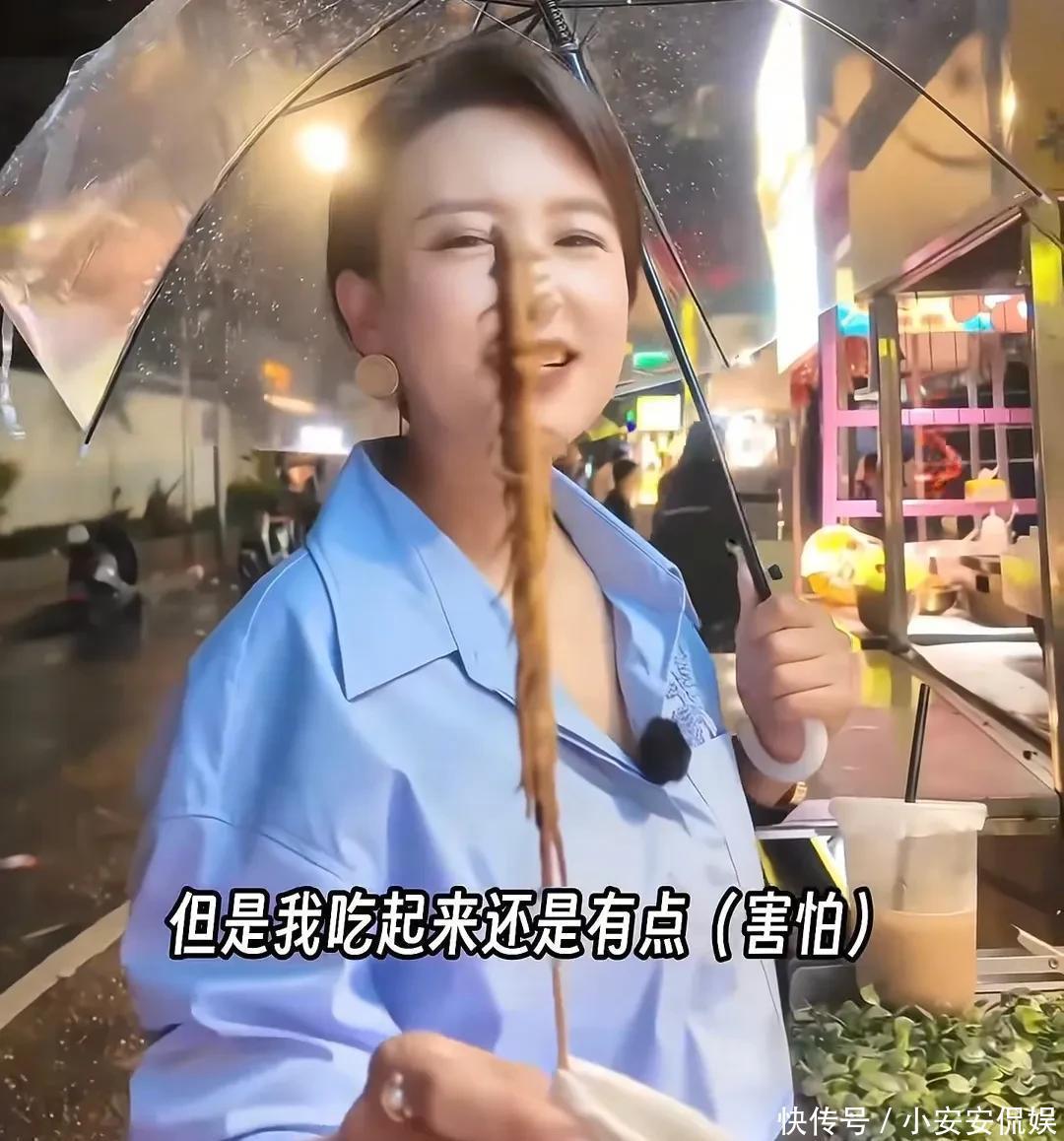 46岁张蕾打卡成都夜市,和粉丝共享一碗脑花,挑战吃蜈蚣胆子很大