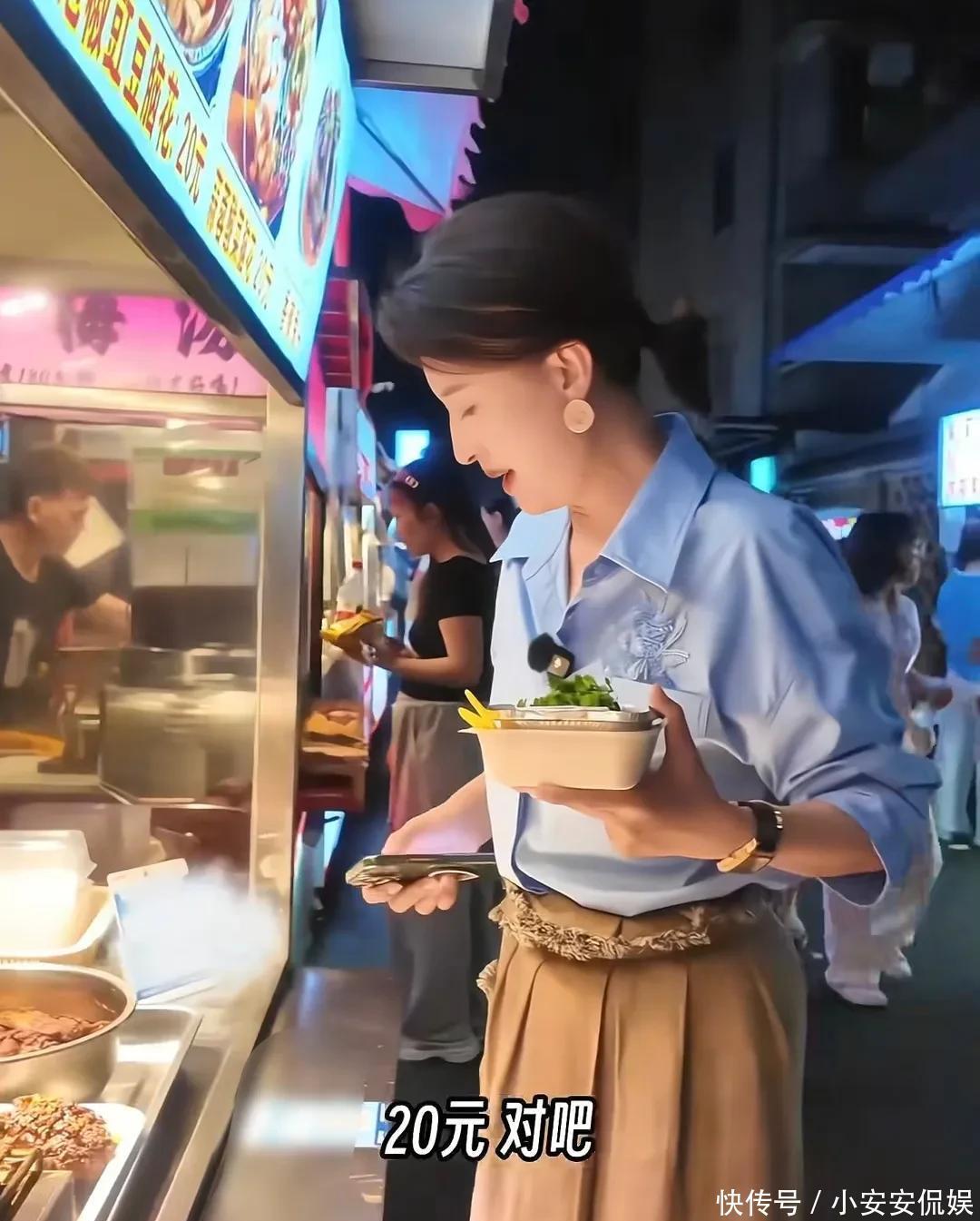 遇到做脑花的摊位,张蕾忍不住点了一份,她无法接受蒜蓉口味,直接来了一份香辣脑花。买单的时候也是张蕾自己掏手机付钱,名人出来吃东西该多少就是多少,摊主按原价收了张蕾二十。