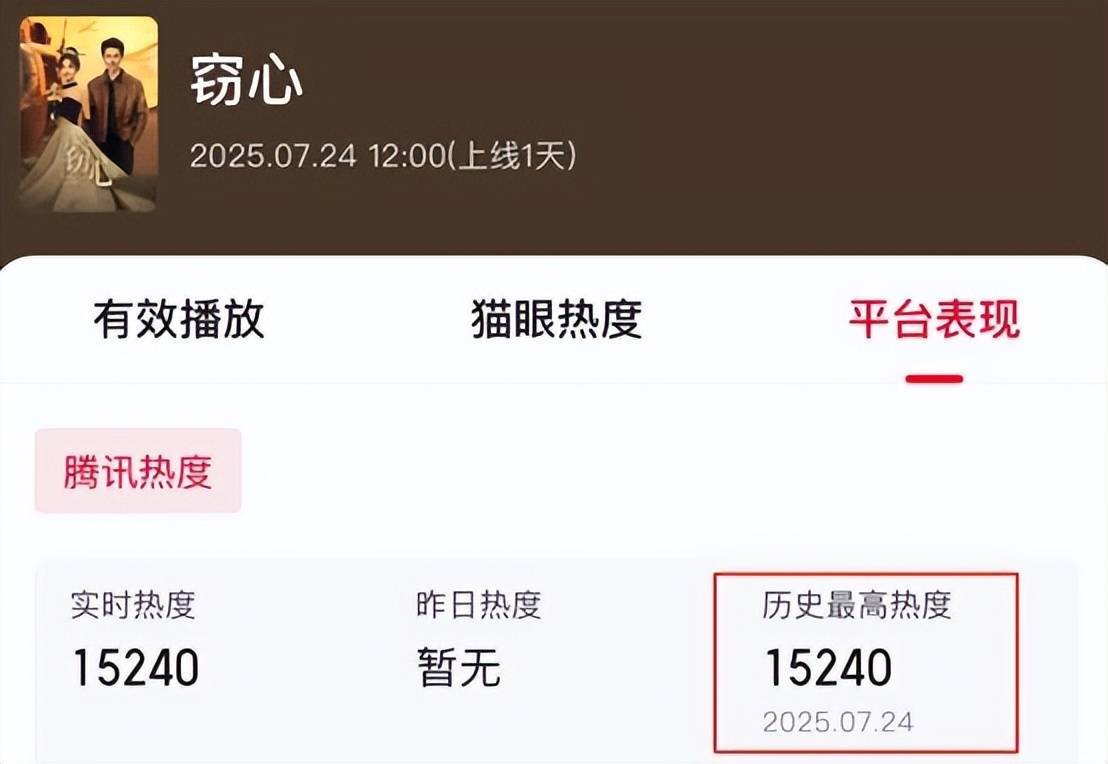 幸好鹅厂及时出手了,一部《窃心》仅播2小时热度轻松破15000,这部短剧的爆火,不知道让内娱多少流水线民国剧脸红。