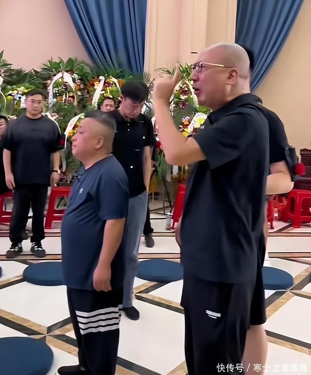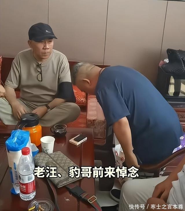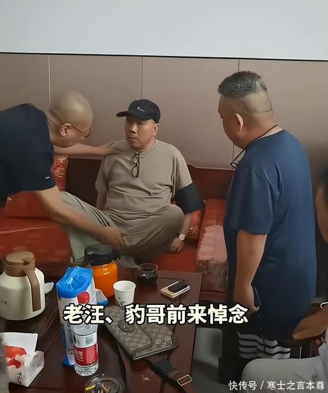 相声界的豹哥和老汪也前来送老爷子最后一程,豹哥还带了一大束菊花。