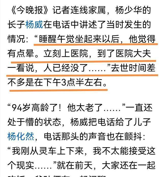 7月9日,94岁的相声老艺术家杨少华去世了!