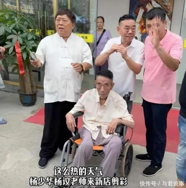 就在那天上午,天津35℃高温,体感温度逼近40℃,杨少华被儿子用轮椅推到“丽姐家常小海鲜”开业现场剪彩。