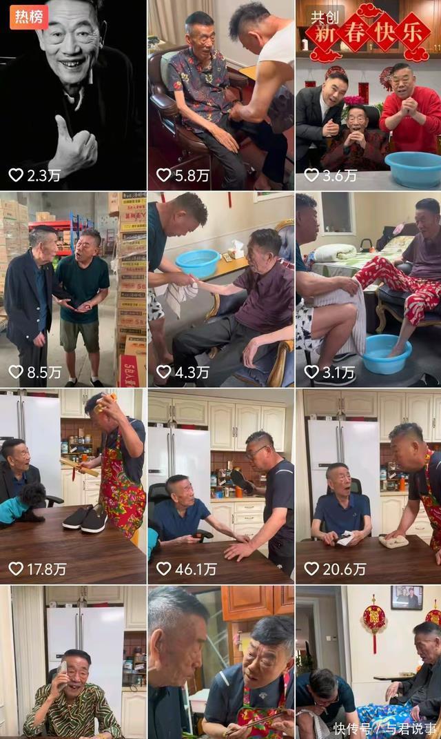 翻杨少华晚年视频,心酸场景不少。牙掉光的他被塞干果,酸饮料呛得皱眉,还要配合儿子拍“杨爷爷快乐生活”。
