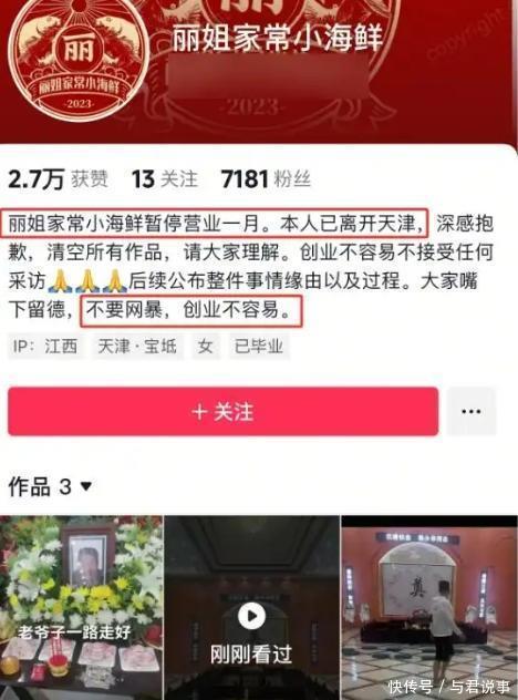 海鲜店老板娘“丽姐”更惨,刚开业就遭网暴围攻,吓得直接关店逃出天津。