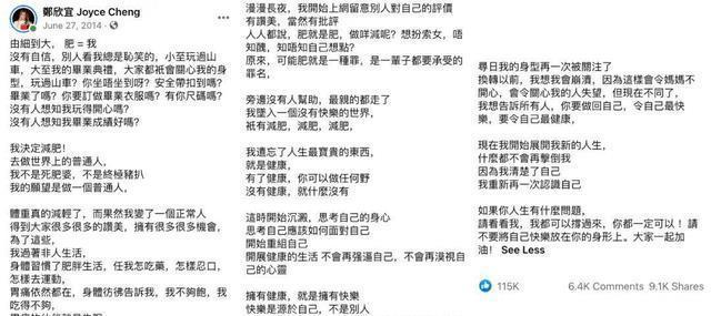 不堪打击的郑欣宜开始暴饮暴食,体重反弹后,她丢了减肥公司的代言。