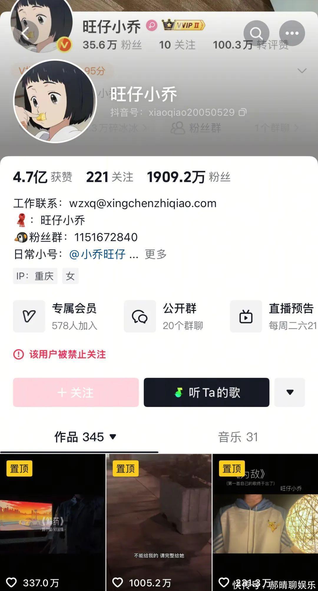 网红“旺仔小乔”微博被禁言,抖音、小红书被禁止关注,道歉信查重率97%