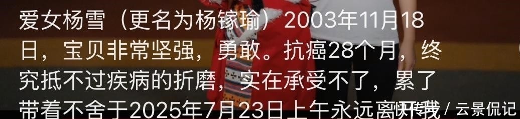 她的女儿名叫杨雪,年仅21岁,就读于四川外国语大学,然而在确诊直肠癌后,病情迅速恶化,生命转瞬即逝。