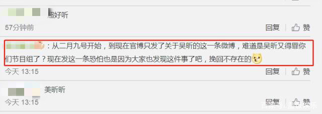 连续两周多都没有关于吴昕的宣传,只有17号转发了一条吴昕的微博,官博的这一举动自然引起了粉丝的不满,开始质疑官博是不是故意不发吴昕的东西。