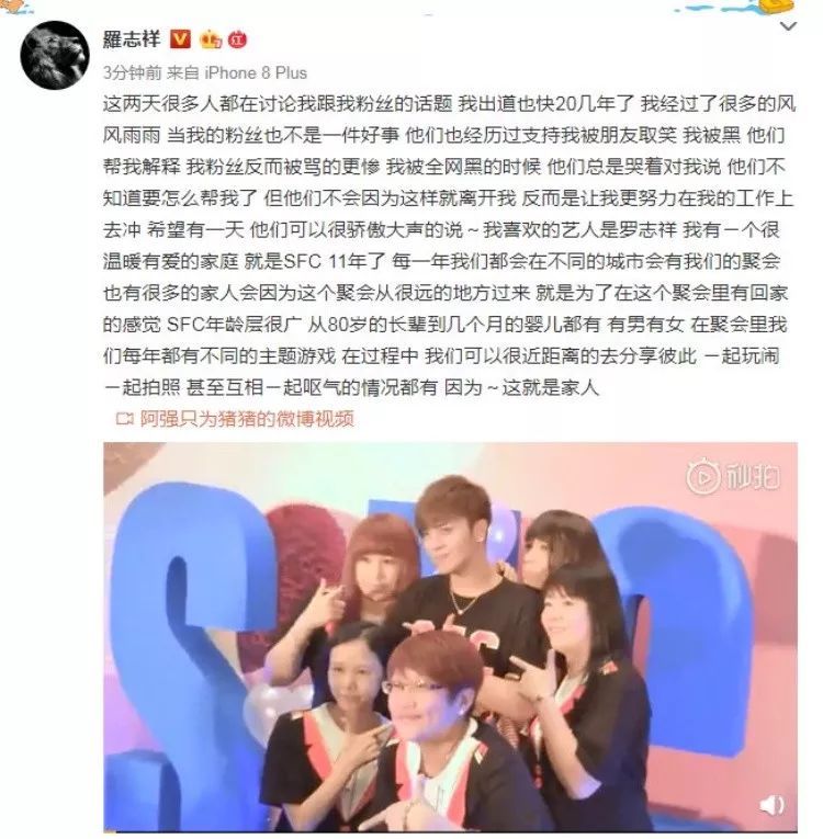 今天罗志祥也为自己的粉丝福利在微博上作出了官方的解释。一大段文字配上剪辑过的温情视频,似乎能够充分表达小猪对于粉丝的珍爱之情。
