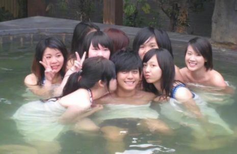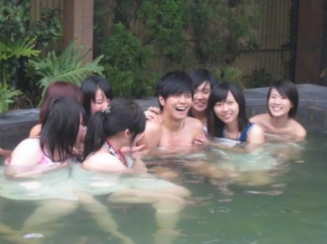 比如说和一群女粉丝亲密泡温泉,有直白的肢体接触▽