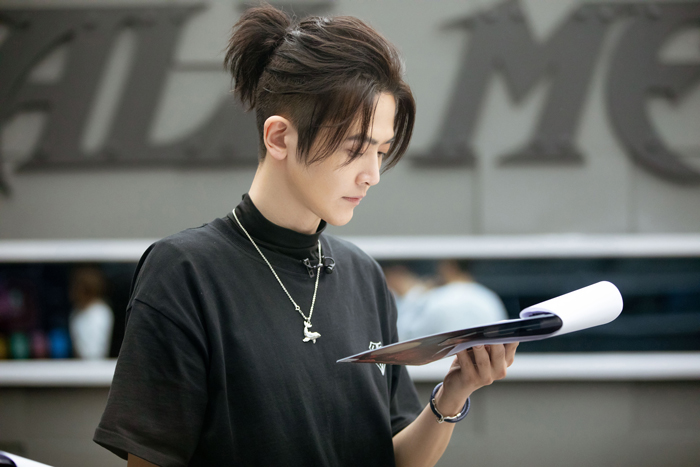 图一:言承旭练习歌曲超投入,认真琢磨舞蹈动作