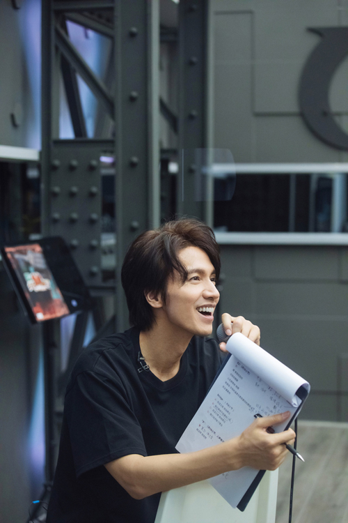 图三:言承旭开怀与队友探讨歌曲细节,歌词本上认真记录笔记