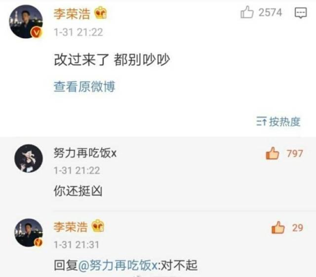 奈何,却瞬间被网友发现艾特错了人,评论区瞬间炸锅。李荣浩在发现艾特错认后火速编辑微博,并重新艾特了张艺兴,顺便还一脸正气的抢占了自己的热门喊话粉丝:“改过来了,都别吵吵。”日常迷糊,是李可爱本人没错了。