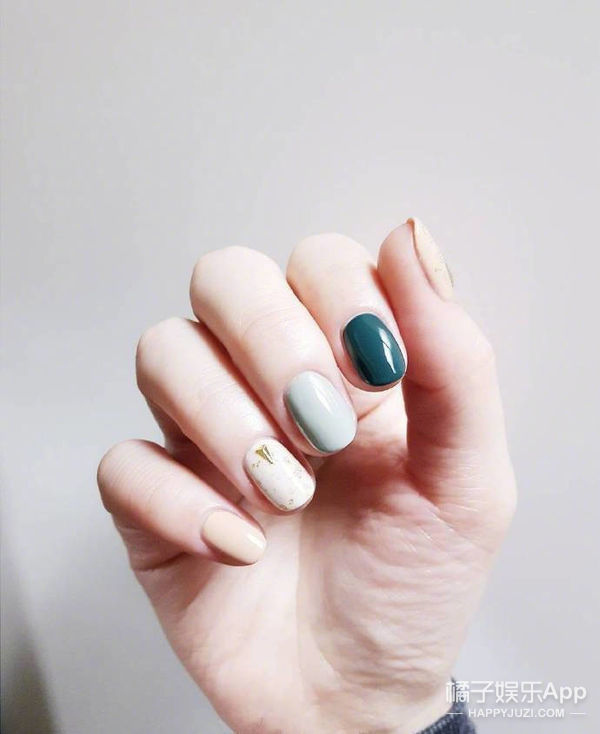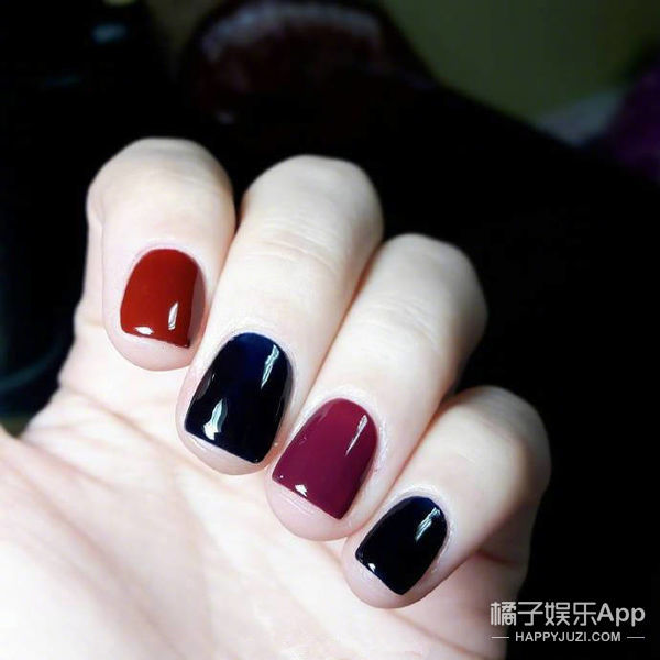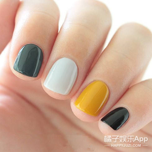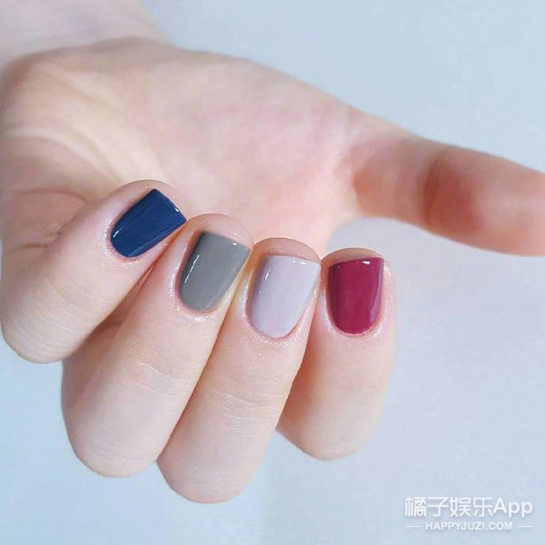 跳色是美甲中很常见的涂法, 一般就是选择2-3个指甲跳不同的颜色, 显得更加时尚活泼。
