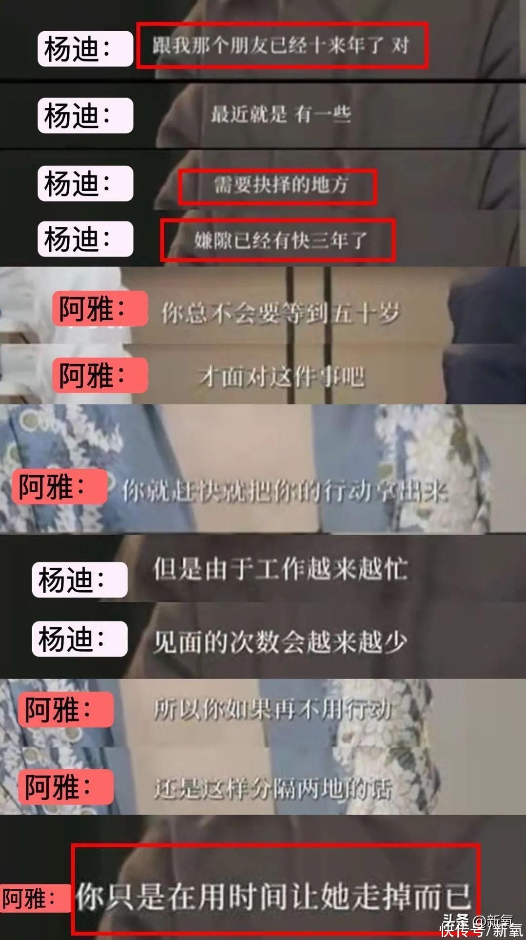 另外在一次采访中,阿雅也曾毫不客气的对杨迪说「如果你再不行动,你只是在用时间让她走掉而已」