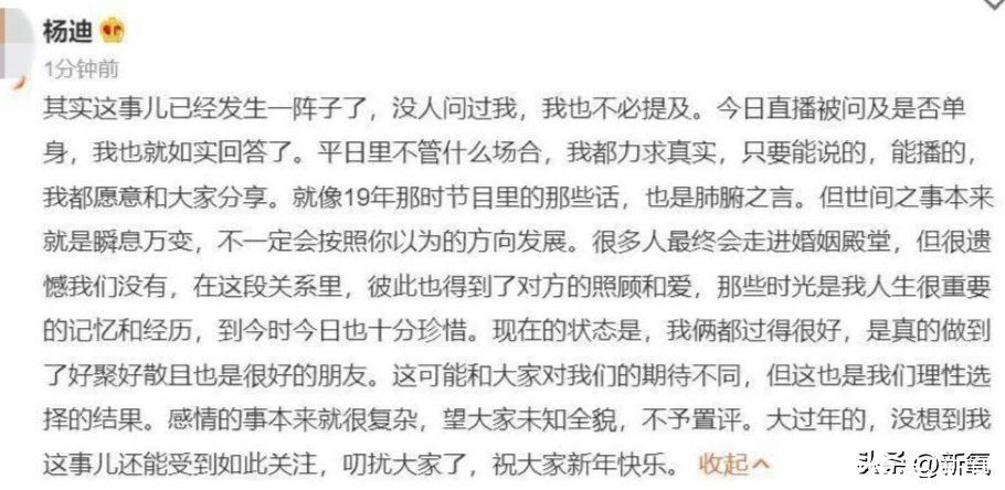在几天前的一场直播中,杨迪被问到感情状况,他表示已经和谈了16年的女友分手了…