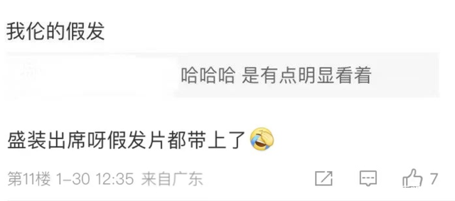 所以在现场的照片中,不难看到周董的超高颅顶以及头发分层明显,而这些都是佩戴假发片的痕迹。对此,网友调侃周董真是盛装出席,竟然还带上了假发。