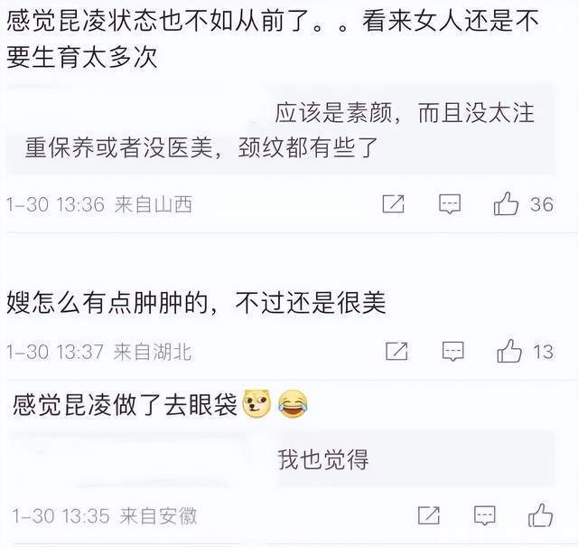 昆凌的脸部肿胀明显,与之前的紧致小V脸形成鲜明对比,特别是眼部问题更是抢镜,浮肿感非常突出,令昆凌的那双又大又亮的大眼睛瞬间变小不少,以往的混血感貌似也被淡化了。就连昆凌脖子上的颈纹也很显眼,让还不满30岁的昆凌增龄不少。