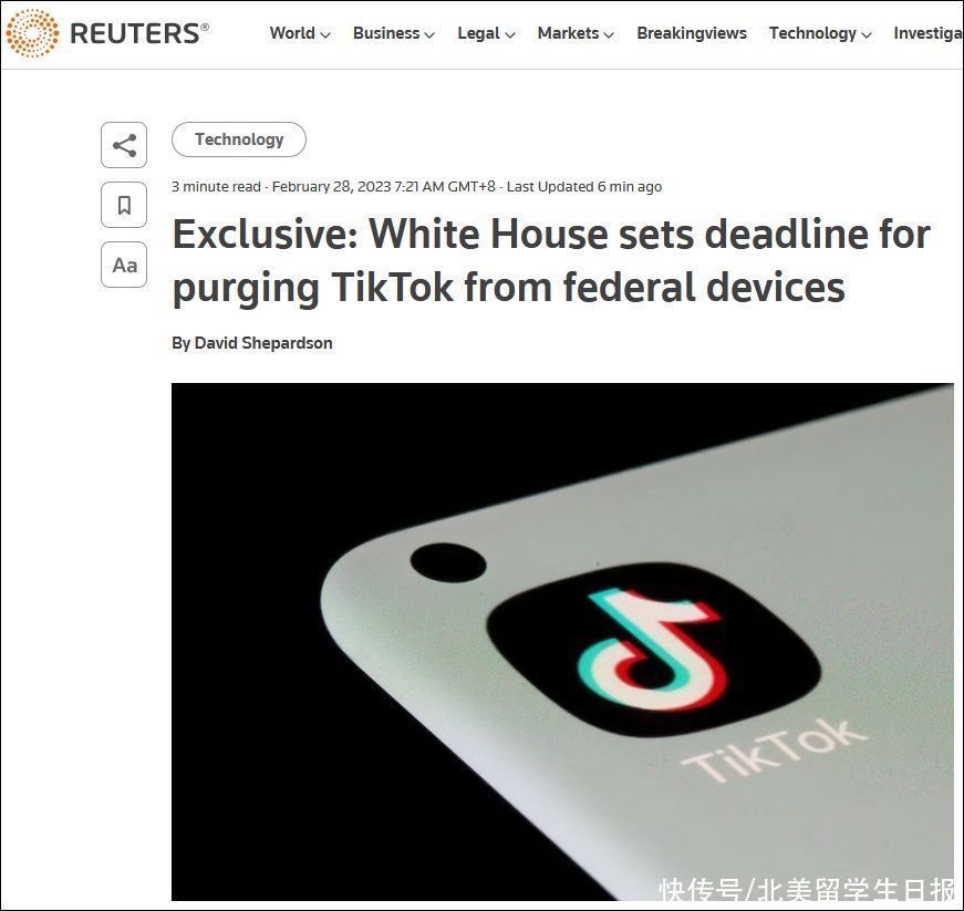同时据路透社当地时间2月27日独家报道,美国白宫当天已要求政府机构于30天内确保在其联邦设备和系统上禁用TikTok这一款社交媒体应用程序。据悉,路透社在白宫行政管理与预算局(OMB)局长莎兰达·杨(Shalanda Young)发布给各机构的指导备忘录中看到,其中声称,“为保证美国数据安全”,所有联邦机构必须从手机和系统中删除TikTok,并禁止互联网流量连接该应用程序。加拿大和欧洲议会紧随其后,也纷纷宣布了对Tik Tok的禁令。