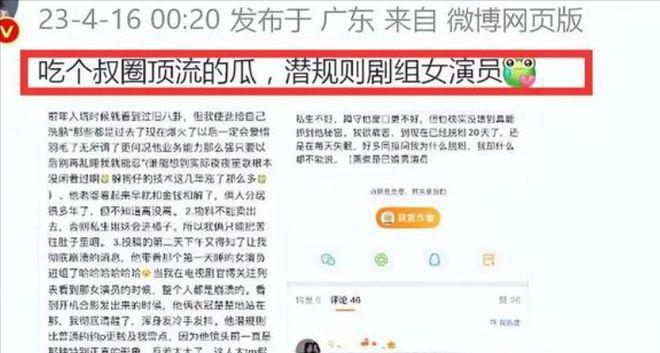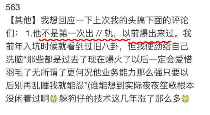 于和伟的爆料,是一位网友的言论,说疑似某位叔圈顶流出轨多次。