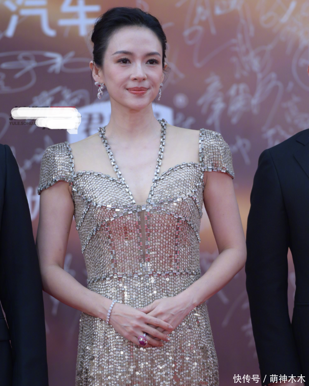 章子怡的亮片珠宝裙堪称全场最华丽的造型,她的皮肤状态也很不错,只是和张小斐一样,妆容没做好,眼睫毛过于生硬,其实这也是明星们逃不过的岁月痕迹,随着年龄增长胶原蛋白流失,皮肤下方没了支撑,眼周是最先暴露年龄的,就必须加重眼妆了。