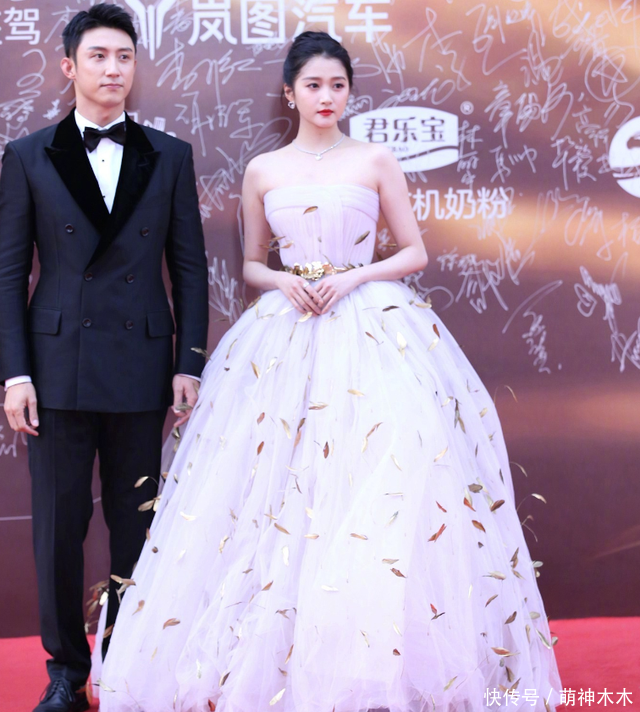 关晓彤的金叶抹胸纱裙还是蛮暴露她的身材短板的,明明她够瘦了,可一旦露出肩膀,总是看着有点壮,大裙摆又遮住了关晓彤长腿优势,整套造型顶多没翻车,但称不上好选择。