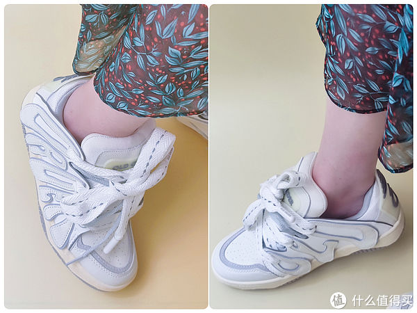 综上,这双鞋子我会经常穿的,它的造型惊艳但却十分百搭,休闲、运动、酷帅、甜美都可以驾驭,内部填充很厚实的海绵,鞋垫的回弹力也蛮好,由于使用的为橡胶大底,所以不是Q且百折不挠的那种脚感,整体比较硬挺,在造型上也更加有轮廓感。