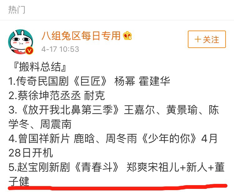 近日,称郑爽将出演赵宝刚导演的新剧《青春斗》的传闻闹得沸沸扬扬,与其一起出演的疑似还有宋祖儿、董子健等演员。
