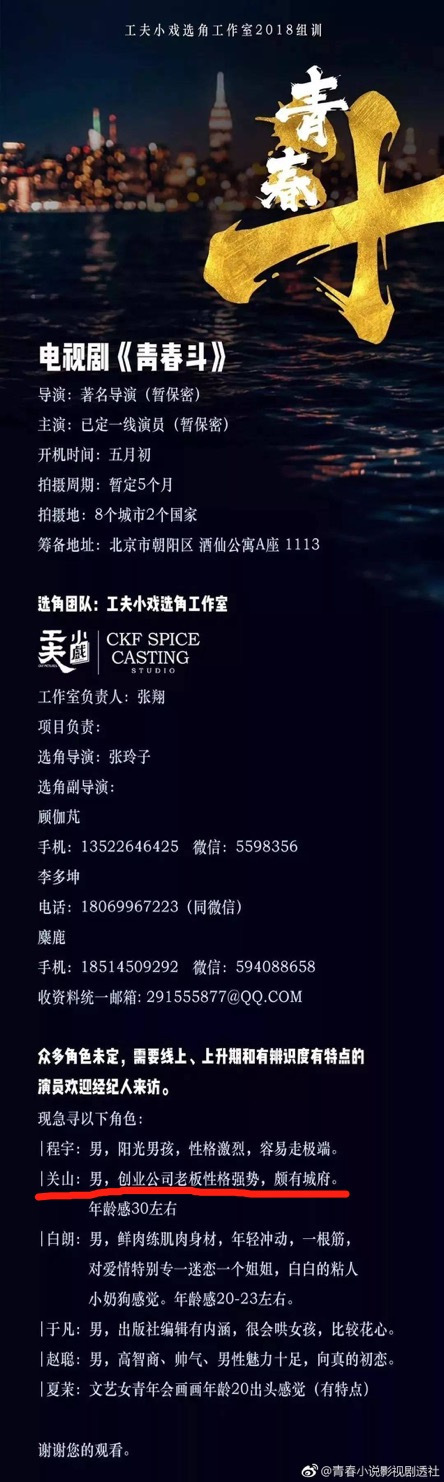 到底是出演男主,还是关山,或是其他角色,还得等五月的官宣。