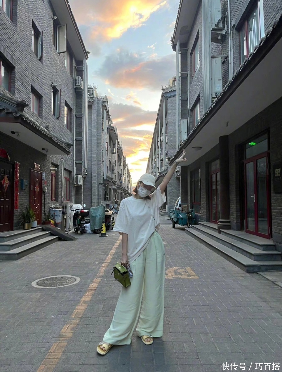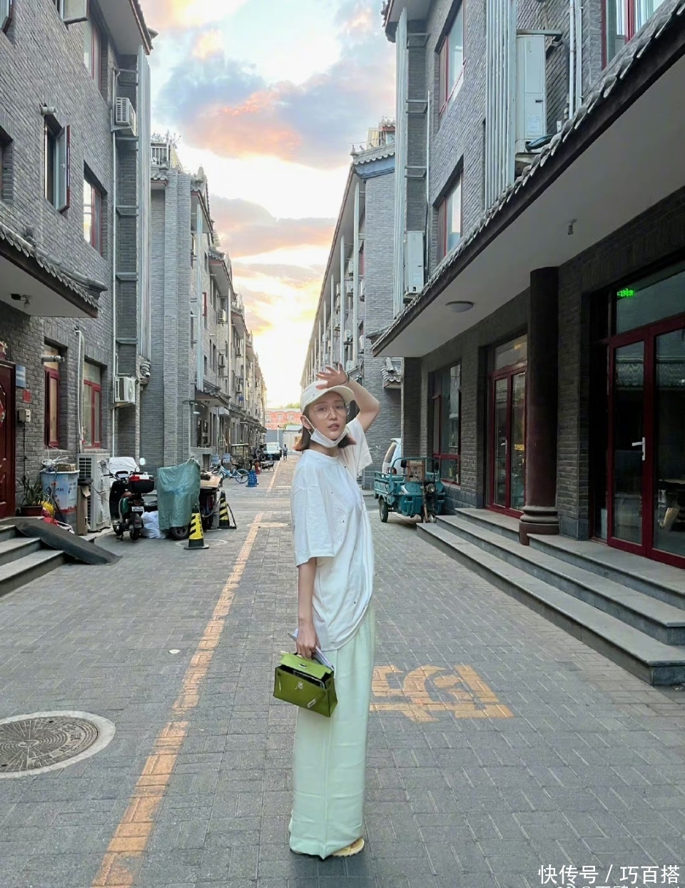 白色T恤搭配苹果绿长裤,简约低调又能迎合夏天穿衣氛围,如果你是身材刚刚发福的女生,选择王鸥身上这几套造型,清爽解腻又不会特笨重,不管是年轻女孩还是年龄大的女士,照着这个模板选准没错。