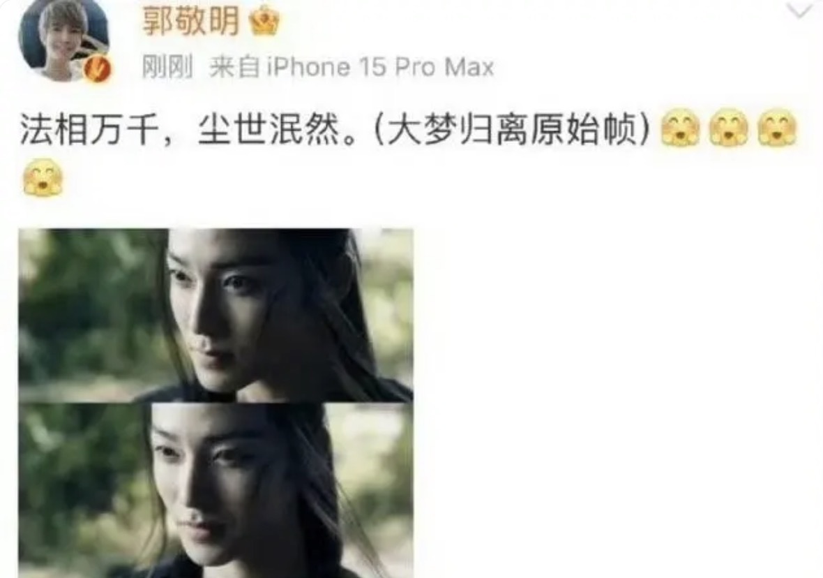 但没想到,该剧在备受关注之下,居然因为导演郭敬明的作妖,导致该剧闹上了热搜。导演郭敬明先发了几张侯明昊在《大梦将离》中的原始帧画面。