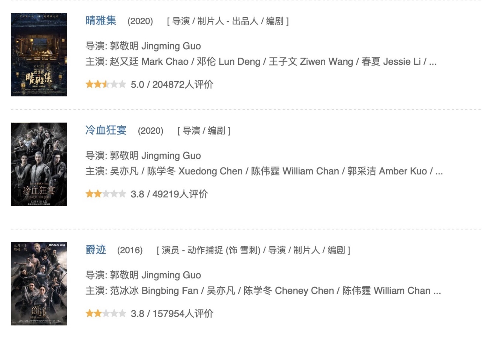 由此可见,网友们都对郭敬明早已不满了。虽然他是圈内知名导演,但真正能拿得出手的却没有几部,不管是让他一炮成名的《小时代》系列,还是后来的《爵迹》和《晴雅集》评分都在5分上下徘徊,里边的剧情更是一言难尽。