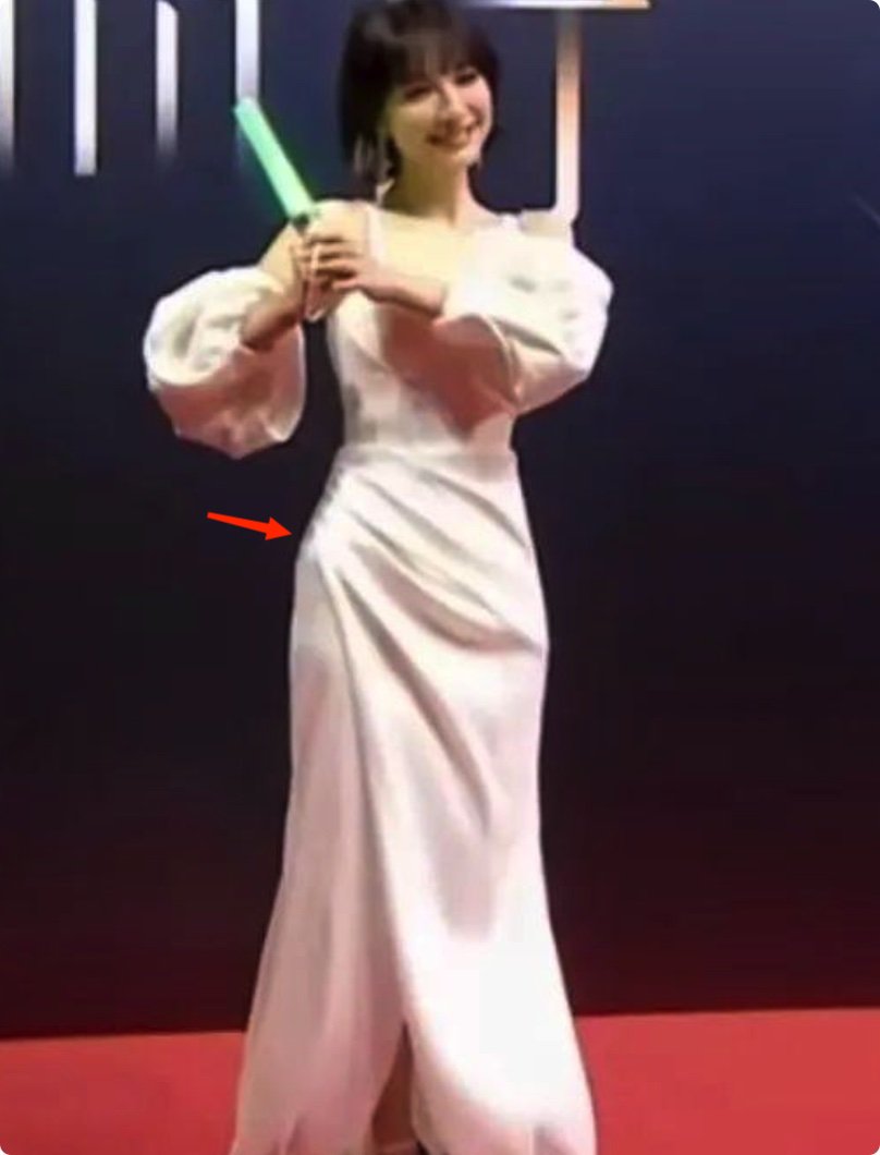 红毯当天,吴昕身穿一件白色的吊带礼裙,面对镜头她大方从容,笑容满面,可镜头给到全景就会发现,这套裙子基本全靠吴昕的骨架子支撑。