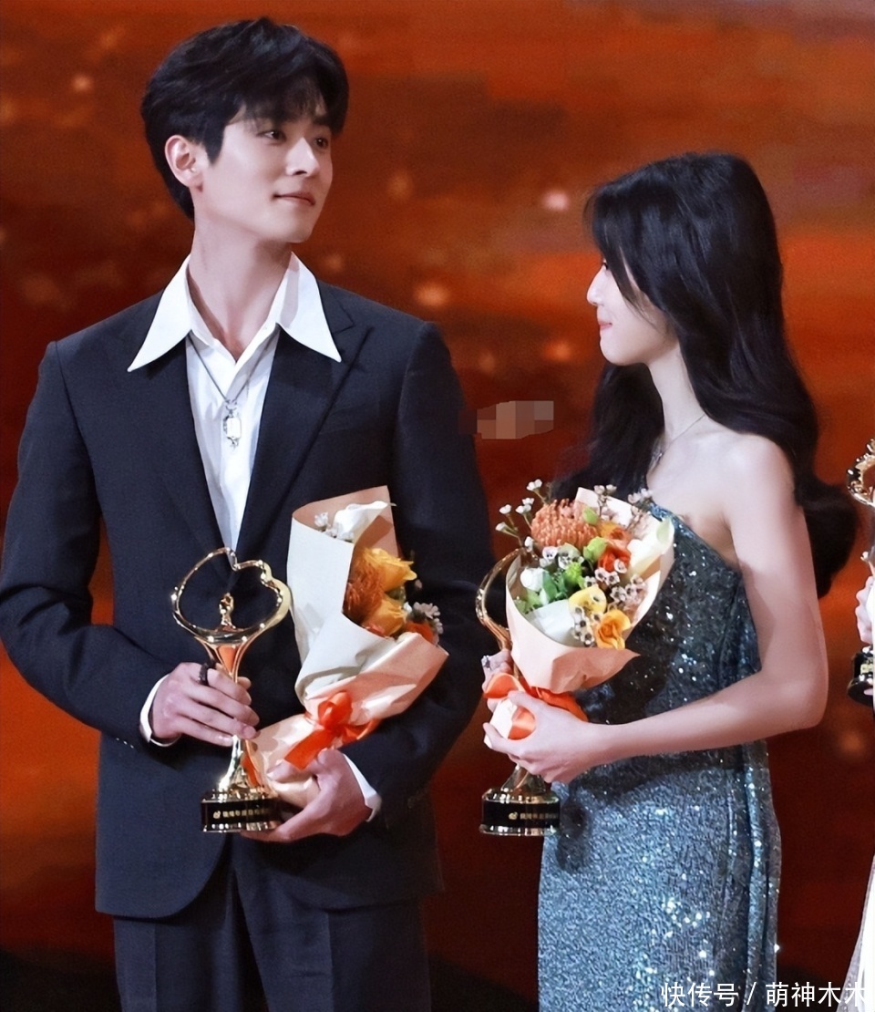张凌赫在台上发表获奖感言的时候,导播还很调皮地连续两次把镜头切给白鹿,还好白鹿镇定hold住。