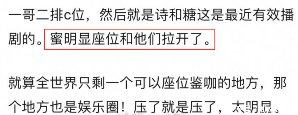 从座位图也能看出来,内娱起起伏伏,要想保住地位,还是得靠作品说话。可能这也是很多大热CP在热度降下来之后,不愿再同框炒作的原因。